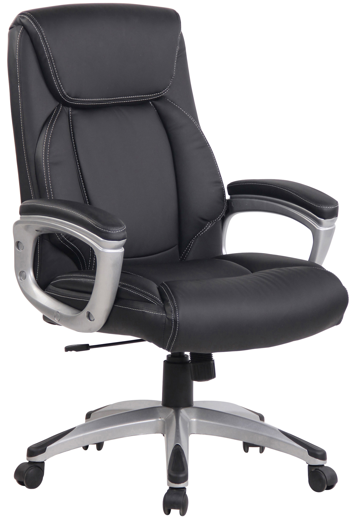 Bürostuhl Leeston - Klassischer Stil und Komfort! Dieser Stuhl lässt in Sachen Komfort keine Wünsche offen, denn mit der ergonomisch geformten Rückenlehne und der stufenlos verstellbaren Sitzhöhe ist eine angenehme Sitzposition garantiert. Bewegungsfreiheit wird durch den eingebauten Wippmechanismus ermöglicht. Die hochwertige Polsterung und der pflegeleichte Kunstlederbezug überzeugen darüber hinaus durch eine hohe Lebensdauer. Der Bürostuhl steht standsicher auf fünf Leichtlaufrollen und einem Gestell aus Kunststoff in Metalloptik. Egal ob Hart- oder Teppichböden - man kann immer leicht und locker über den Boden rollen. Materialzusammensetzung: 100% Polyurethan Ca. Maße: Gesamthöhe: 107 - 116 cm Gesamtbreite: 69 cm Gesamttiefe: 69 cm Sitzhöhe: 49 - 58 cm Sitzfläche (BxT): 54 x 50 cm Höhe Armlehne: 17 cm Höhe Rückenlehne: 64 cm Max. Belastbarkeit: 125 kg Gewicht: 15 kg Sitz: Bezug: Kunstleder Sitz, Arm- und Rückenlehne bequem gepolstert Hohe Rücklehne für besseren Sitzkomfort Gestell: Material: Kunststoff inklusive 5 Leichtlaufrollen Höhenverstellbar und Drehbar Besonderheiten: Komfortables Sitzen auch nach mehreren Stunden Der eingebaute Wippmechanismus sorgt für mehr Bewegungsfreiheit Stabile Konstruktion & strapazierfähiger Bezug Pflegehinweise: Leichte Verschmutzung mit feuchtem Baumwolltuch abwischen Oberflächen nur mit geeignetem Aufsatz absaugen Keine Haushaltsreiniger verwenden