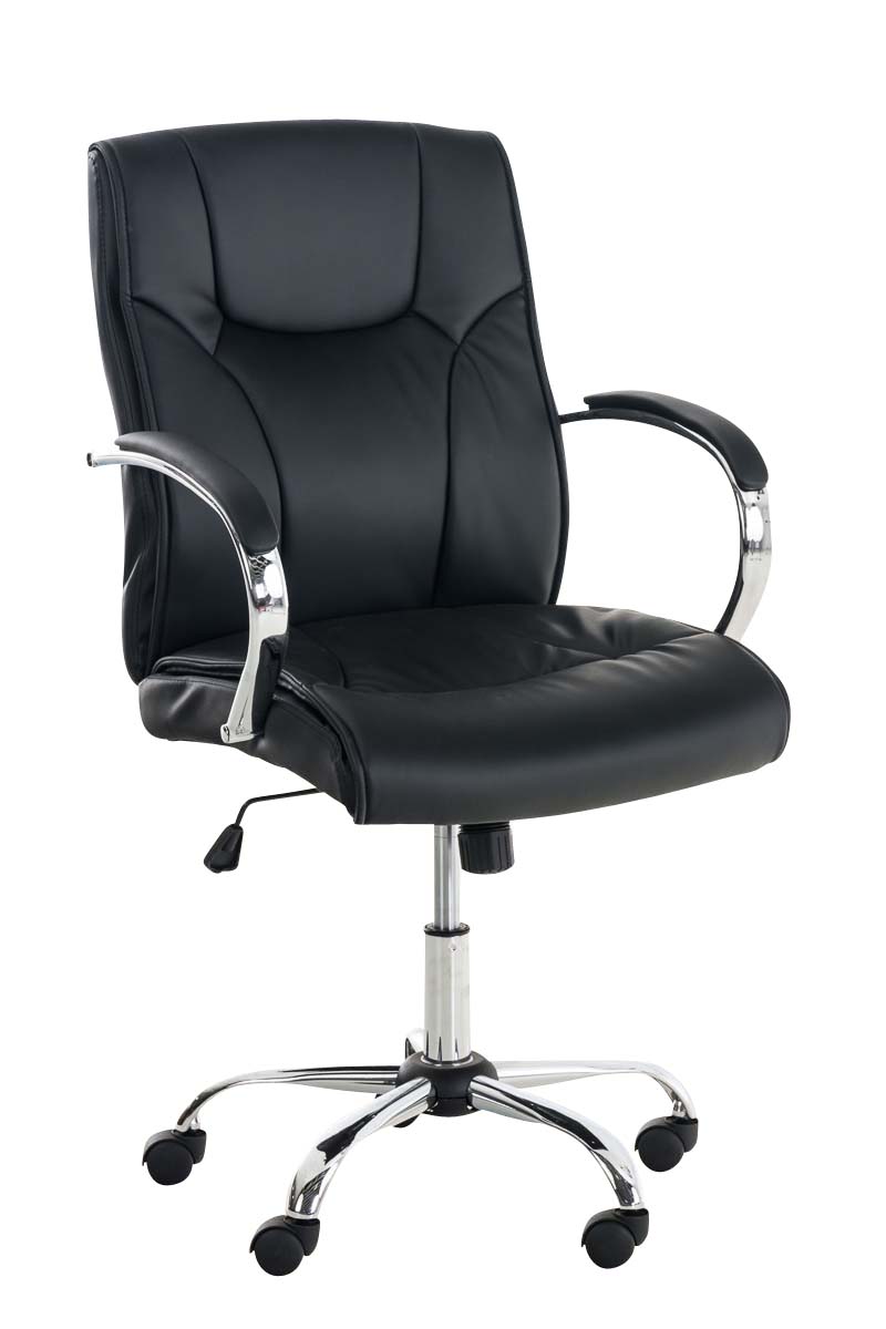 Bürostuhl Calea - Klassisch, bequem und hochwertig! Der Bürostuhl Calea ist ein exklusiver Chefsessel, der mit einer sehr hochwertigen Polsterung mit Kunstlederbezug versehen ist. Durch den Bezug ist dieser Stuhl leicht zu reinigen und das Material hat eine hohe Lebensdauer. Der Sitzkomfort wird durch die Polsterung und die ergonomische Rückenlehne gewährleistet. Zudem ist durch die stufenlose Höhenverstellbarkeit und dem Wippmechanismus komfortables Sitzen auch über mehrere Stunden möglich. Dabei steht dieser Schreibtischstuhl auf einem Metallgestell in Chromoptik mit fünf Leichtlaufrollen. Somit kann man immer leicht und locker über den Boden rollen - Egal ob Hart - oder Teppichböden. Materialzusammensetzung Sitz: Kunstleder (100% Polyurethan) Sitz: -Großzügige Arm- und Rückenlehne-Sitz und Rückenlehne bequem gepolstertBesonderheiten: -Komfortables Sitzen auch nach mehreren Stunden-Pflegeleichte Oberflächen-Lange LebensdauerGestell: -Material: Metall in Chromoptik-Stufenlos höhenverstellbar-Inklusive 5 LeichtlaufrollenPflegehinweise: -Leichte Verschmutzung mit feuchtem Baumwolltuch abwischen-Oberflächen nur mit geeignetem Aufsatz absaugen-Zur Reinigung empfehlen wir ein mit lauwarmem Wasser angefeuchtetes Baumwolltuch