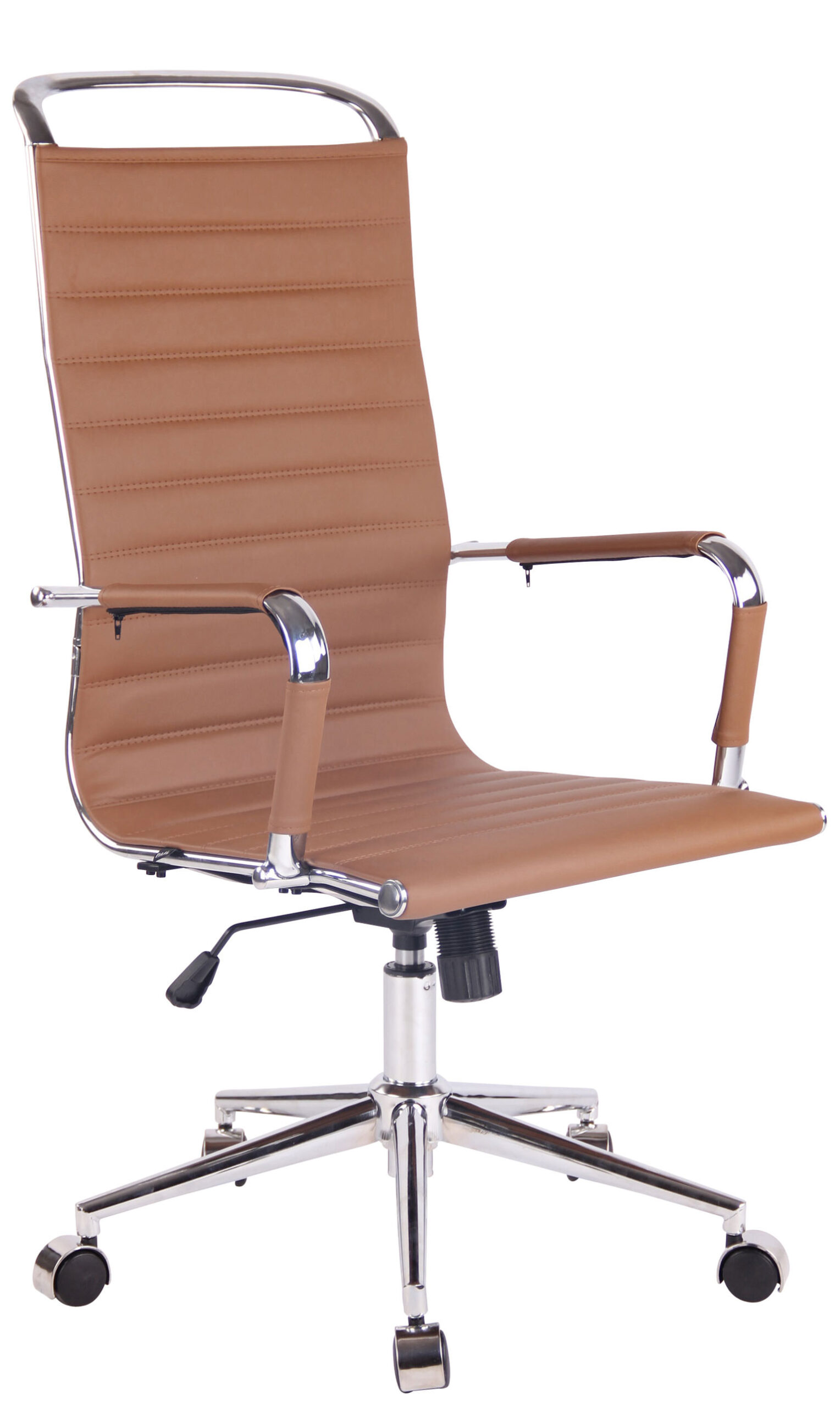 Bürostuhl Barnes - Klassisch, schlicht und komfortabel! Dieser Bürostuhl Barnes überzeugt nicht nur mit seinem modernen Look, auch in Sachen Komfort kann ihm keiner etwas vormachen. Der Drehstuhl ist wahlweise mit einem Kunstleder-, oder Echtlederbezug versehen und besonders pflegeleicht. Des Weiteren ist die Sitzhöhe stufenlos verstellbar und garantiert ein ergonomisches Sitzen. Zudem ist der Schreibtischstuhl mit einem Wippmechanismus versehen, der für mehr Bewegungsfreiheit sorgt. Die Stabilität ist durch das Metallgestell in Chromoptik gewährleistet. Durch die fünf Leichtlaufrollen kann man leicht und locker über den Boden rollen - egal ob auf Hart- oder Teppichböden. Das elegante Chromgestell und die geschwungenen Armlehnen geben dem Ganzen das gewisse Extra und runden das Design ab. Ca. Maße: Gesamthöhe: 110 - 120 cm Gesamtbreite: 58 cm Gesamttiefe: 65 cm Sitzhöhe: 45 - 55 cm Sitzfläche (BxT): 51 x 45 cm Höhe Rückenlehne: 66 cm Höhe Armlehne: 23 cm Max. Belastbarkeit: 136 kg Gewicht: 12 kg Sitz: Bezug: Echtleder Bezug: Kunstleder (100% Polyurethan) Angenehme Sitzposition durch Rückenlehne Gestell: Material: Metall in Chromoptik Höhenverstellbar und drehbar Inklusive 5 Leichtlaufrollen Besonderheiten: Eingebauter Wippmechanismus Lange Lebensdauer Modernes Design Pflegehinweise: Keine Haushaltsreiniger verwenden Leichte Verschmutzung mit feuchtem Baumwolltuch abwischen Oberflächen nur mit geeignetem Aufsatz absaugen
