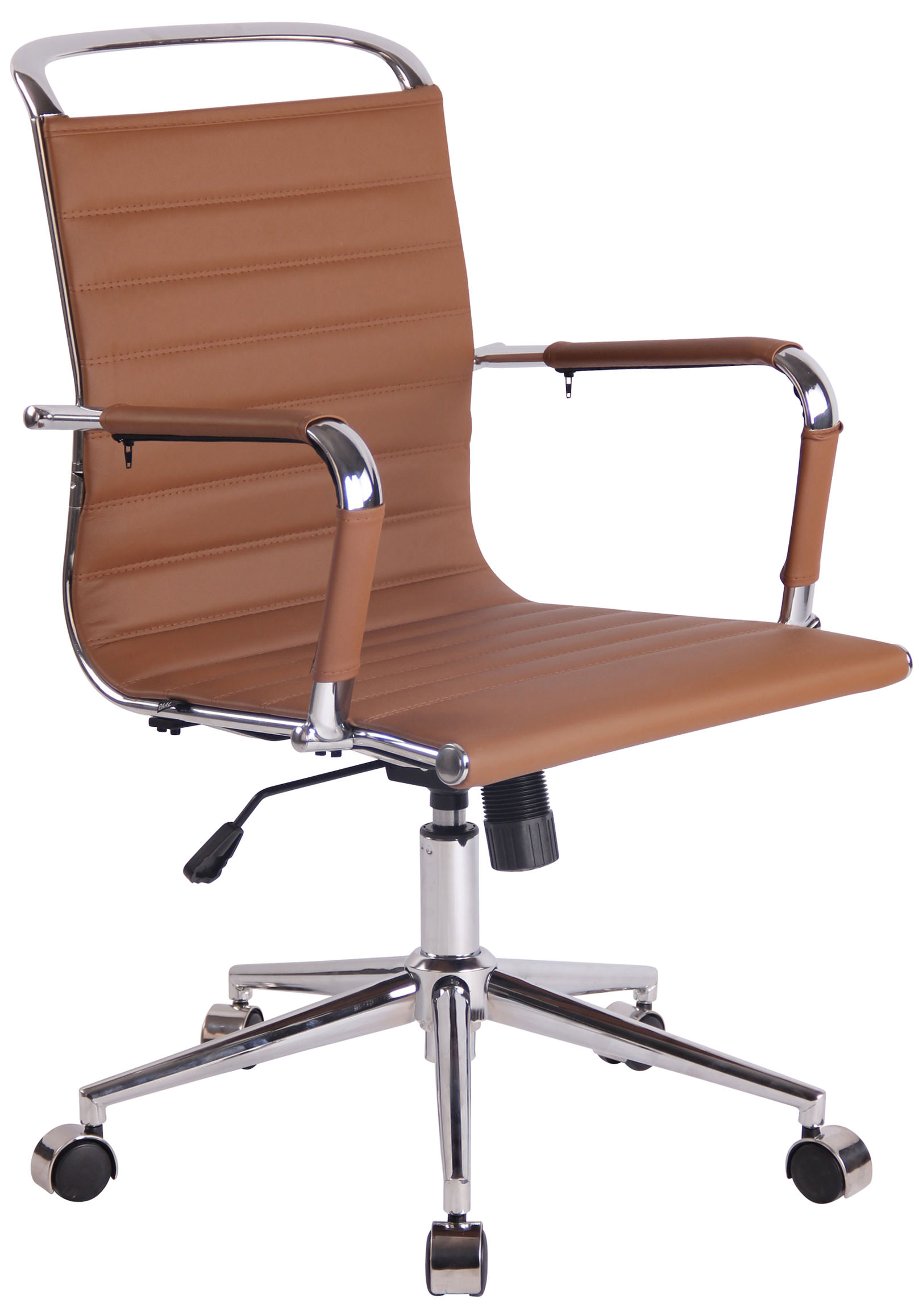 Dieser Bürostuhl Barton überzeugt nicht nur mit seinem modernen Look, auch in Sachen Komfort kann ihm keiner etwas vormachen. Der Drehstuhl ist wahlweise mit einem Kunstleder-, oder Echtlederbezug versehen und besonders pflegeleicht. Zudem ist die Sitzhöhe stufenlos verstellbar und garantiert ein ergonomisches Sitzen. Des Weiteren ist der Schreibtischstuhl mit einem Wippmechanismus versehen, der für mehr Bewegungsfreiheit sorgt. Die Stabilität ist durch das Metallgestell in Chromoptik gewährleistet. Durch die fünf Leichtlaufrollen kann man leicht und locker über den Boden rollen – egal ob auf Hart- oder Teppichböden. Das elegante Chromgestell und die stabil geschwungenen Armlehnen geben dem Ganzen noch das gewisse Extra und runden das Design ab.
