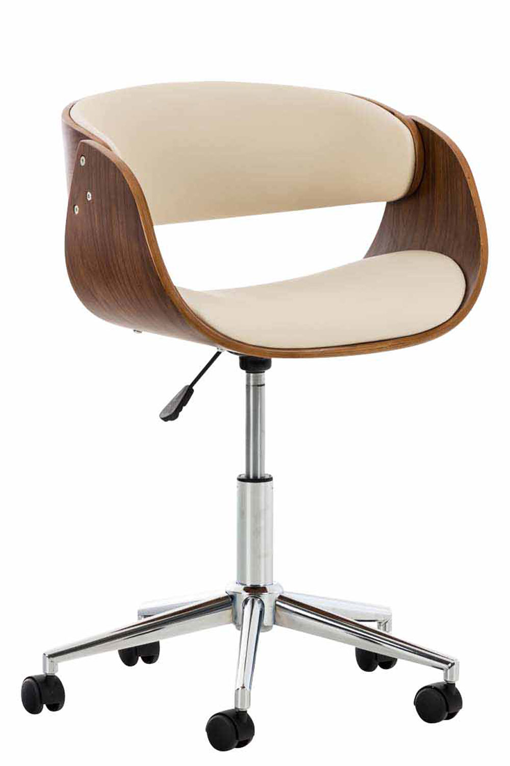 Bürostuhl Portmore - Design mit Funktion! Der Bürosessel Portmore beeindruckt durch sein modernes Design und bietet dank der Rückenlehne hohen Komfort während des Arbeitens. Dieser exklusive Bürostuhl ist mit einer sehr hochwertigen Polsterung und Kunstlederbezug versehen. Der Holzrahmen aus Pappelholz ist mit einem Echtholzfurnier versehen und macht diesen Schreibtischstuhl zum absoluten Hingucker. Dank der stufenlos verstellbaren Sitzhöhe ist ergonomisches Sitzen garantiert. Das stabile Gestell ist aus Metall in Chromoptik und steht standsicher auf fünf Leichtlaufrollen. Egal ob Hart- oder Teppichböden - man kann immer leicht und locker über den Boden rollen. Materialzusammensetzung Sitzbezug: Kunstleder (100% Polyurethan) Ca. Maße: Gesamthöhe: 70 - 83 cm Gesamtbreite: 54 cm Gesamttiefe: 52 cm Sitzhöhe: 45 - 58 cm Sitzfläche (BxT): 46 x 38 cm Höhe Rückenlehne (vom Sitz): 26 cm Max. Belastbarkeit: 120 kg Gewicht: 9 kg Sitz: Angenehme Sitzposition durch Rückenlehne Sitz und Rückenlehne bequem gepolstert Gestell: Material: Metall in Chromoptik Inklusive 5 Leichtlaufrollen Lange Lebensdauer Besonderheiten: Höhenverstellbar und drehbar Komfortables Sitzen auch nach mehreren Stunden Stabile Konstruktion & strapazierfähiger Bezug Pflegehinweise: Leichte Verschmutzung mit feuchtem Baumwolltuch abwischen Oberflächen nur mit geeignetem Aufsatz absaugen Keine Haushaltsreiniger verwenden