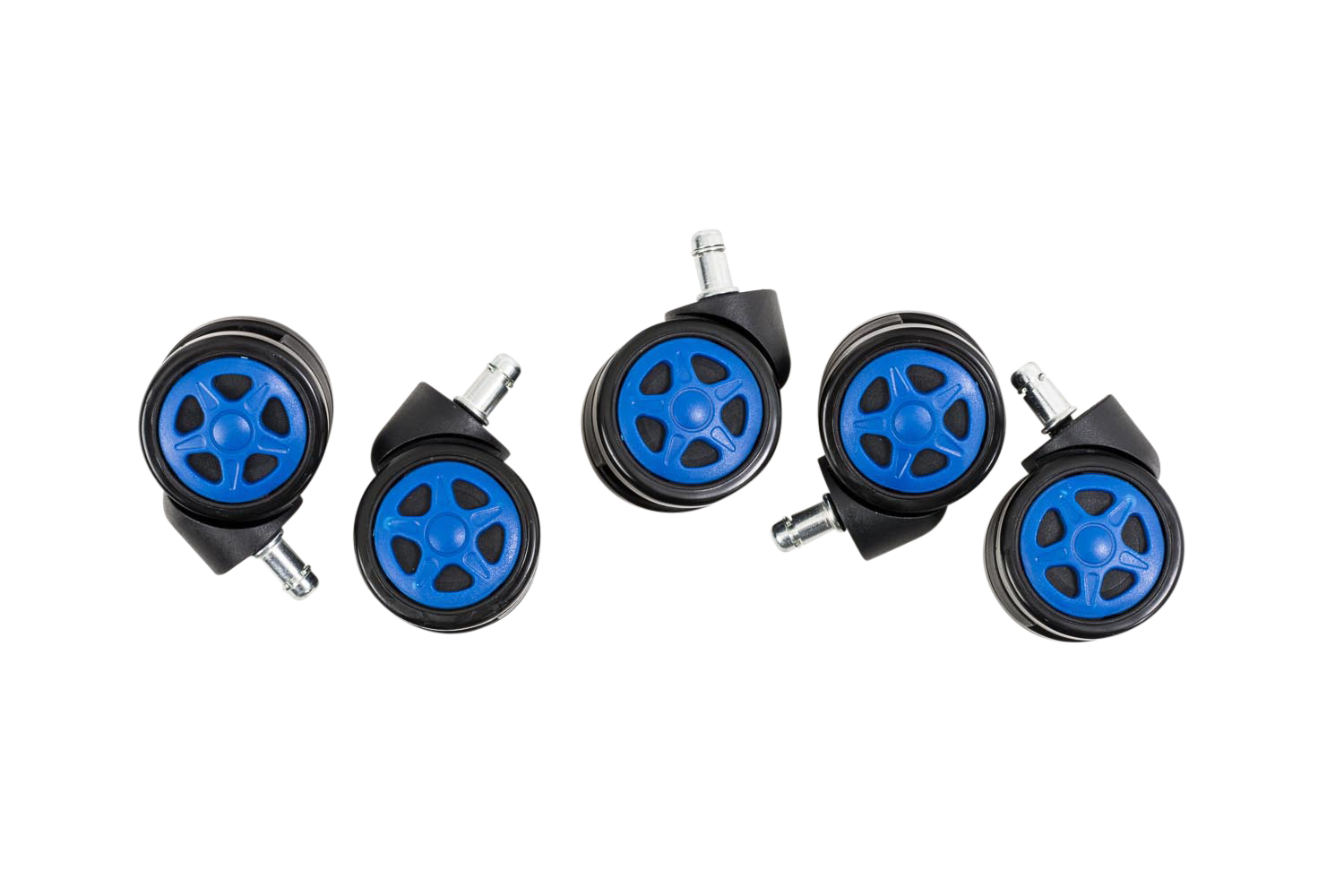 5er Pack Racing Bodenrollen im sportlichen Design Diese Bodenrollen aus Kunststoff sind universell einsetzbar und können ideal für Racing Bürostühle, Schreibtischstühle, Chefsessel und Drehstühle verwendet werden - tauschen Sie einfach die alten Rollen aus. Die Montage der Stuhlrollen gestaltet sich sehr leicht: Dafür müssen die alten Rollen einfach abgezogen und die neuen Kunststoffrollen eingesteckt werden. Außerdem kann man mit den Laufrollen immer leicht und locker über den Boden rollen, denn diese sind für Hart- und Teppichböden geeignet. Ca. Abmessungen: Durchmesser Stift: 11 mm Stiftlänge: 20 mm Durchmesser Rolle: 5,5 cm Gesamtdicke Rolle: 5 cm Gesamthöhe Rolle: 8 cm