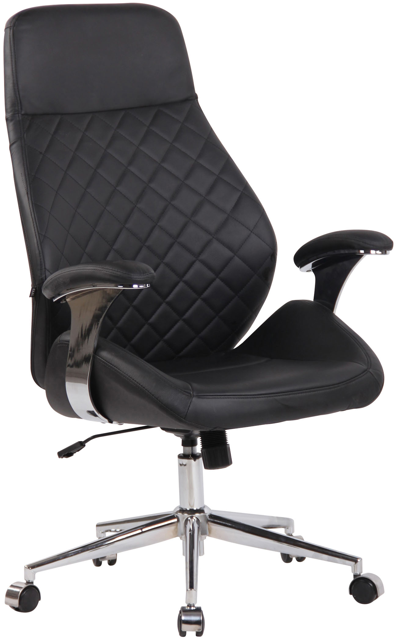 Bürostuhl Layton Dieser Bürostuhl Layton überzeugt nicht nur mit seinem modernen Look, auch in Sachen Komfort kann ihm keiner etwas vormachen. Der Drehstuhl ist mit einem pflegeleichten Kunstlederbezug oder Echtlederbezug versehen. Bei der Echtledervariante ist die Sitzfläche und Rückenlehne mit hochwertigem Rindsleder bezogen. Die Rück- und Unterseite ist mit pflegeleichtem Kunstleder bezogen. Dank der angenehmen Polsterung und der Rückenlehne ist optimaler Sitzkomfort auch über einen längeren Zeitraum gewährleistet. Des Weiteren ist die Sitzhöhe stufenlos verstellbar und garantiert ein ergonomisches Sitzen und der Wippmechanismus sorgt für mehr Bewegungsfreiheit. Bei der Kunstledervaiante ist das Untergestell aus Kunststoff und die fünf gummierten Leichtlaufrollen garantieren einen sicheren Stand und sorgen für ein leichtes und lockeres Rollen über Hart- oder Teppichböden. Bei der Echtledervariante handelt sich um ein Metallgestell mit fünf Leichtlaufrollen. Materialzusammensetzung: 100% Polyurethan / Echtleder 100% Rindsleder Ca. Maße: Gesamthöhe: 116 - 126 cm Gesamtbreite: 74 cm Gesamttiefe: 64 cm Sitzhöhe: 46 - 56 cm Sitzfläche (BxT): 61 x 49 cm Höhe Rückenlehne: 73 cm Höhe Armlehne: 23 cm Max. Belastbarkeit: 150 kg Gewicht: 20 kg Sitz: Material: Kunstleder Material: Echtleder (Sitzbereich und Front der Rückenlehne) Sitz, Arm- und Rückenlehne bequem gepolstert Gestell: Material: Kunststoff Material: Metall Höhenverstellbar und Drehbar Inklusive 5 Leichtlaufrollen Besonderheiten: Eingebauter Wippmechanismus Lange Lebensdauer Modernes Design Pflegehinweise: Keine Haushaltsreiniger verwenden Leichte Verschmutzung mit feuchtem Baumwolltuch abwischen Oberflächen nur mit geeignetem Aufsatz absaugen
