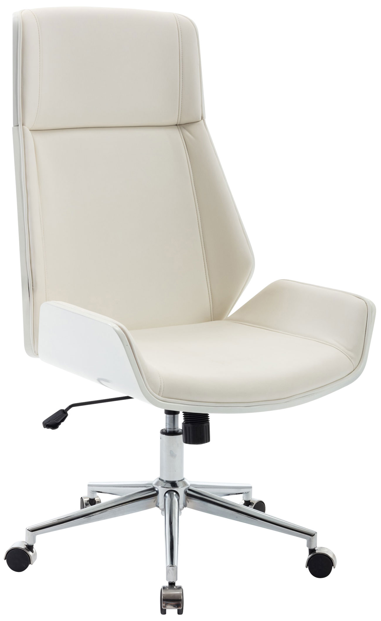 Bürostuhl Breda Dieser Bürostuhl hat eine sehr hochwertige Polsterung, die mit einem Kunstlederbezug versehen ist. Kunstlederbezüge haben den Vorteil, dass sie elastisch sind und sich bei Entlastung wieder glatt ziehen. Dies sieht nicht nur schöner aus, sondern erhöht zusätzlich die Lebensdauer des Sitzbezuges. Der Holzrahmen macht diesen Drehstuhl zum absoluten Hingucker und verleiht ihm ein edles Design. Dank der stufenlos verstellbaren Sitzhöhe ist ergonomisches Sitzen garantiert und der eingebaute Wippmechanismus sorgt für mehr Bewegungsfreiheit. Das Gestell ist aus Metall in Chromoptik und sehr stabil. Der Schreibtischstuhl steht standsicher auf fünf Leichtlaufrollen. Egal ob Hart- oder Teppichböden - man kann immer leicht und locker über den Boden rollen. Materialzusammensetzung: 100% Polyurethan Ca. Maße: Gesamthöhe: 113 - 121 cm Gesamtbreite: 60 cm Gesamttiefe: 63 cm Sitzhöhe: 44 - 52 cm Sitzfläche (BxT): 42 x 51 cm Höhe Rückenlehne: 69 cm Max. Belastbarkeit: 136 kg Gewicht: 16 kg Sitz: Bezug: Kunstleder Sitz und Rückenlehne bequem gepolstert Hohe Rücklehne für besseren Sitzkomfort Gestell: Material: Metall Mit stabilem Drehkreuz 5 Leichtlaufrollen Besonderheiten: Stufenlos höhenverstellbar Wippfunktion für mehr Bewegungsfreiheit Stabile Konstruktion & strapazierfähiger Bezug Pflegehinweise: Leichte Verschmutzung mit feuchtem Baumwolltuch abwischen Zur Reinigung empfehlen wir ein mit lauwarmem Wasser angefeuchtetes Baumwolltuch Oberflächen nur mit geeignetem Aufsatz absaugen