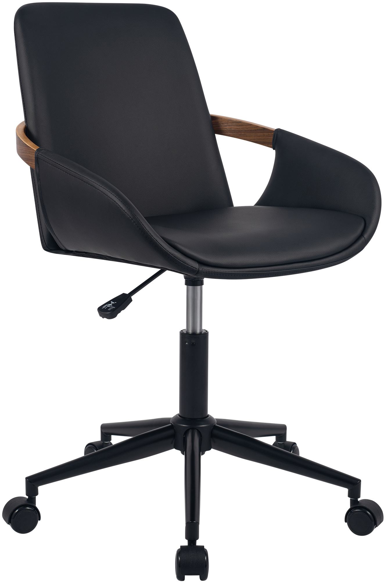 Bürostuhl Daina Der Bürostuhl Daina vereint exklusives Design mit funktionaler Vielseitigkeit. Die markante Formgebung aus gebogenem Bugholz in Walnussoptik verleiht dem Stuhl eine warme, zeitlose Ästhetik. Kombiniert mit einem strapazierfähigen Bezug aus hochwertigem Kunstleder ist dieses Modell besonders pflegeleicht und wasserabweisend. Die ergonomisch abgestimmte Polsterung sorgt für eine optimale Druckverteilung und unterstützt eine gesunde Sitzhaltung über mehrere Stunden hinweg. Ob im modernen Büro, im Konferenzraum oder im heimischen Arbeitszimmer. Dieser Stuhl überzeugt durch Stabilität, Komfort und ein repräsentatives Erscheinungsbild.