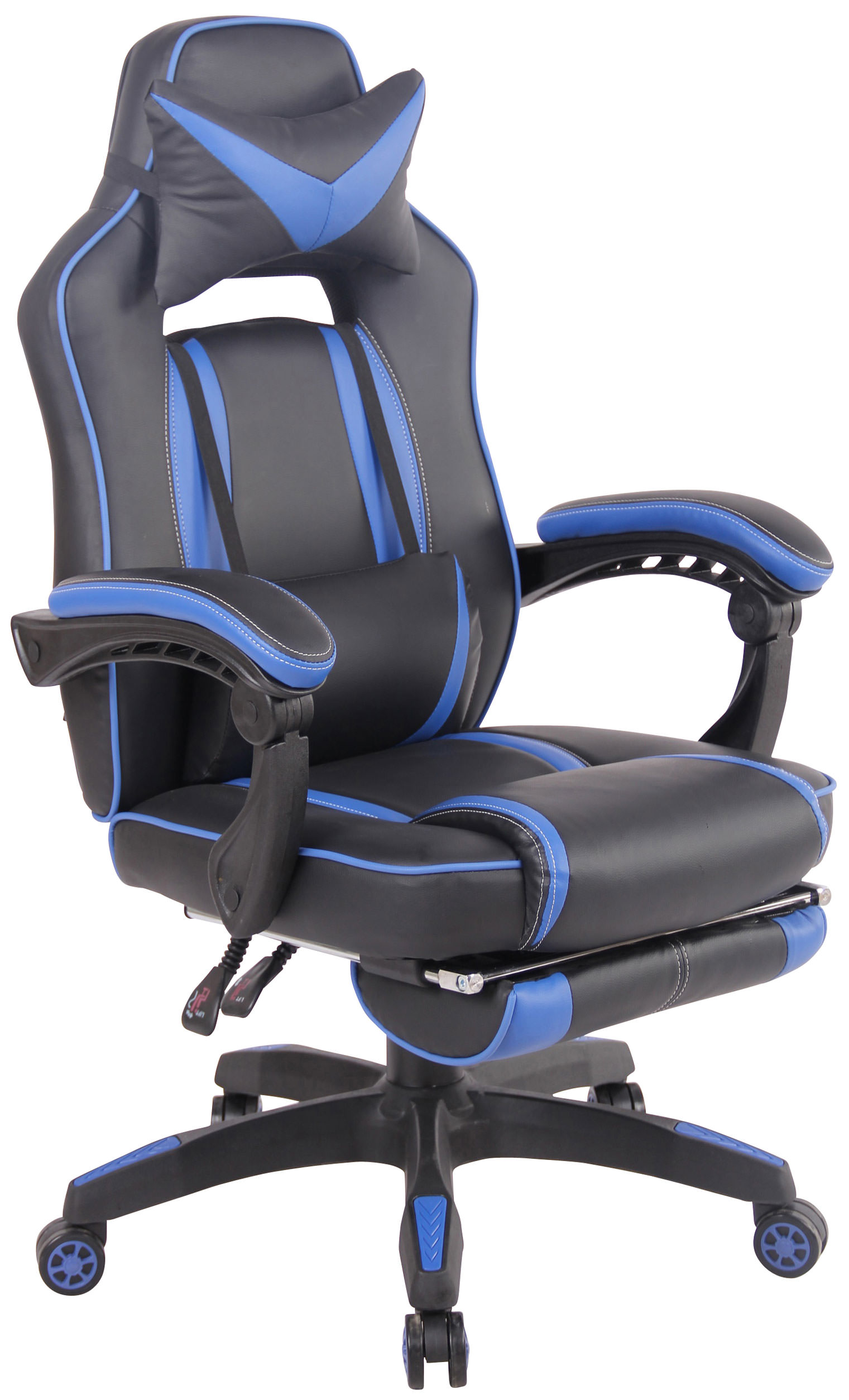 Bürostuhl Heat - Hoher Sitzkomfort zum Arbeiten und Entspannen! Der Schreibtischstuhl Heat im ansprechenden sportlichen Design kombiniert Funktionalität und Komfort in bester Art und Weise. Die angenehm gepolsterte Sitzfläche, sowie auch die Armlehnen, sind mit pflegeleichtem Kunstleder bezogen. Das abnehmbare Nacken- und Lendenwirbelkissen sorgen nicht nur für eine gesunde Sitzhaltung, sondern auch für eine langanhaltende Gemütlichkeit. Die leicht verstellbare Rückenlehne und die integrierte Fußstütze sorgen zusätzlich für eine angenehme Pause zwischendurch. Dabei steht der Bürostuhl standsicher auf fünf Leichtlaufrollen und einem Gestell aus Kunststoff. Egal ob Hart- oder Teppichböden - man kann immer leicht und locker über den Boden rollen. Materialzusammensetzung: 100% Polyurethan Ca. Maße: Gesamthöhe: 114 - 124 cm Gesamtbreite: 68 cm Gesamttiefe: 61 cm Sitzhöhe: 48 - 58 cm Sitzfläche (BxT): 53 x 53 cm Höhe Rückenlehne: 70 cm Höhe Armlehne: 20 cm Max. Belastbarkeit: 120 kg Gewicht: 19 kg Sitz: Bezug: Kunstleder Sitz, Arm- und Rückenlehne bequem gepolstert Im sportlichen Design Gestell: Material: Kunststoff Mit Fußablage Inklusive 5 Leichtlaufrollen Besonderheiten: Höhenverstellbar und Drehbar Eingebauter Wippmechanismus Stabile Konstruktion & strapazierfähiger Bezug Pflegehinweise: Zur Reinigung empfehlen wir ein mit lauwarmem Wasser angefeuchtetes Baumwolltuch Leichte Verschmutzung mit feuchtem Baumwolltuch abwischen Oberflächen nur mit geeignetem Aufsatz absaugen