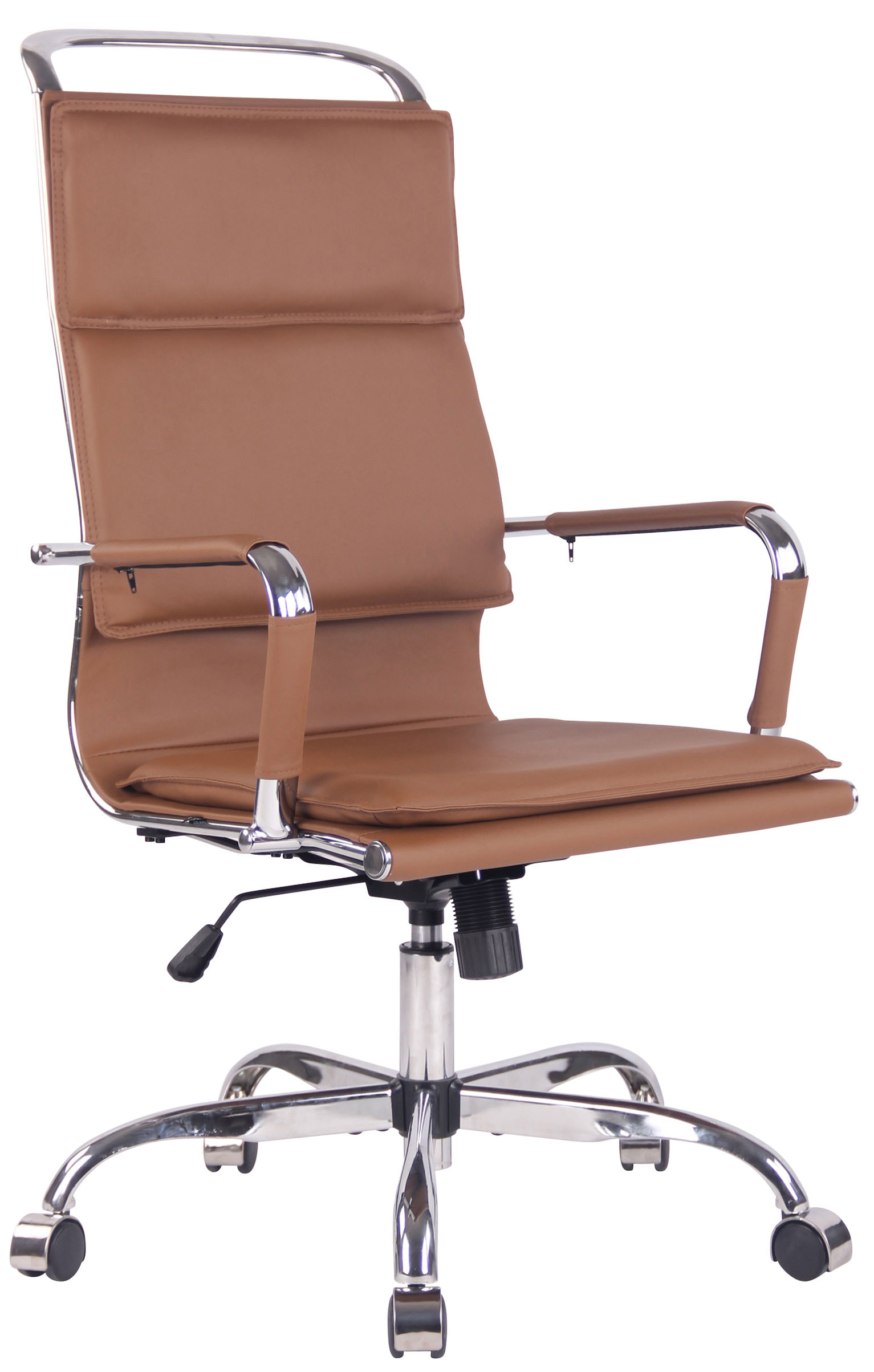 Bürostuhl Bedford - Klassisch, schlicht und komfortabel! Dieser Bürostuhl Bedford überzeugt nicht nur mit seinem modernen Look, auch in Sachen Komfort kann ihm keiner etwas vormachen. Der Drehstuhl ist wahlweise mit einem Kunstleder-, oder Echtlederbezug versehen und besonders pflegeleicht. Des Weiteren ist die Sitzhöhe stufenlos verstellbar und garantiert ein ergonomisches Sitzen. Zudem ist der Schreibtischstuhl angenehm gepolstert und mit einem Wippmechanismus versehen, der für mehr Bewegungsfreiheit sorgt. Die Stabilität ist durch das Metallgestell in Chromoptik gewährleistet. Durch die fünf Leichtlaufrollen kann man leicht und locker über den Boden rollen - egal ob auf Hart- oder Teppichböden. Das elegante Chromgestell und die stabil geschwungenen Armlehnen geben dem Ganzen noch das gewisse Extra und runden das Design ab. Ca. Maße: Gesamthöhe: 110 - 120 cm Gesamtbreite: 58 cm Gesamttiefe: 63 cm Sitzhöhe: 47 - 57 cm Sitzfläche (BxT): 50 x 45 cm Höhe Rückenlehne: 66 cm Höhe Armlehne: 22 cm Max. Belastbarkeit: 136 kg Gewicht: 13 kg Sitz: Bezug: Echtleder Bezug: Kunstleder (100% Polyurethan) Angenehme Sitzposition durch Rückenlehne Gestell: Material: Metall in Chromoptik Höhenverstellbar und drehbar Inklusive 5 Leichtlaufrollen Besonderheiten: Eingebauter Wippmechanismus Lange Lebensdauer Modernes Design Pflegehinweise: Keine Haushaltsreiniger verwenden Leichte Verschmutzung mit feuchtem Baumwolltuch abwischen Oberflächen nur mit geeignetem Aufsatz absaugen
