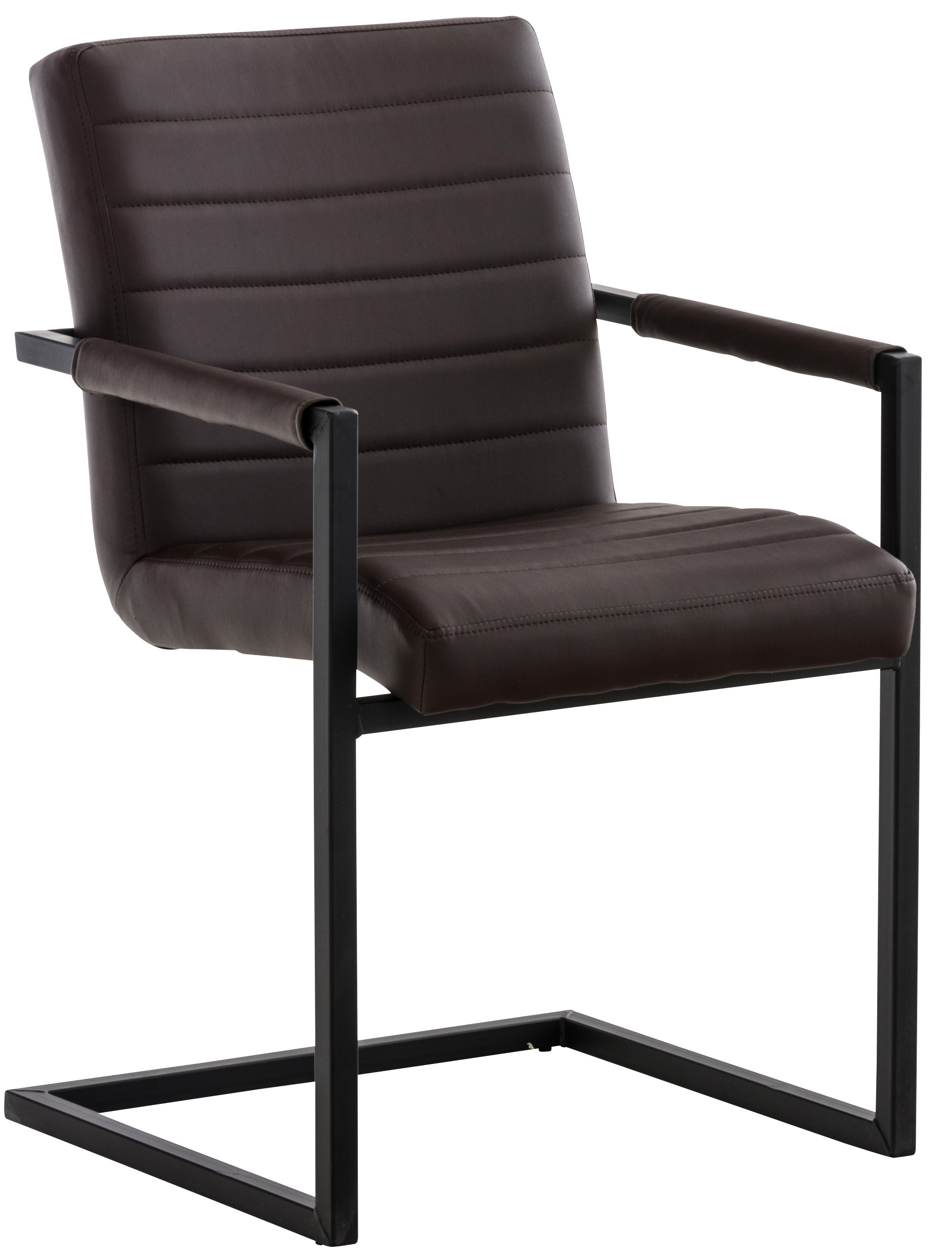 Besucherstuhl Benjamin - Der freischwingende Besucherstuhl mit Klasse! Sie suchen noch nach dem richtigen Stuhl für Ihr Zuhause, auf dem sich Ihre Besucher so richtig wohl fühlen? Sie richten Ihre Praxis neu ein und benötigen einen dezenten Stuhl für Ihre Patienten, der eine komfortable Sitzgelegenheit bietet? Dann ist der Besucherstuhl Benjamin mit seiner bequemen Polsterung genau das Richtige für Sie. Freischwingend passt er sich ganz genau der Beinlänge und dem Gewicht des Sitzenden an. Der abgesteppte Kunstlederbezug macht den Stuhl zu einem echten Hingucker, besonders praktisch ist zudem, dass die Armlehnen mit einem Schoner aus Kunstleder überzogen sind und bei Bedarf abgenommen werden können. Für optimale Stabilität und Standfestigkeit sorgt das robuste Gestell, welches in der Ausführung Metall matt schwarz verfügbar ist. Materialzusammensetzung: 100% Polyurethan Ca. Maße: Gesamthöhe: 87 cm Gesamtbreite: 55 cm Gesamttiefe: 63 cm Sitzhöhe: 50 cm Sitzfläche (B x T): 45 x 40 cm Höhe Rückenlehne (vom Sitz): 40 cm Breite Rückenlehne: 45 cm Höhe Armlehne (vom Sitz): 15 cm Tiefe Armlehne: 40 cm Gewicht: 9 kg Max. Belastbarkeit: 150 kg Sitz: Bezug: Kunstleder Wippfunktion für mehr Bewegungsfreiheit Gut gepolsterte Sitzfläche Gestell: Material: Metall schwarz matt Freischwinger Besonderheiten: Klare Linienführung Strapazierfähiger & pflegeleichter Bezug Dicke Polsterung Pflegehinweise: Zur Reinigung empfehlen wir ein mit lauwarmem Wasser angefeuchtetes Baumwolltuch Leichte Verschmutzung mit feuchtem Baumwolltuch abwischen Oberflächen nur mit geeignetem Aufsatz absaugen
