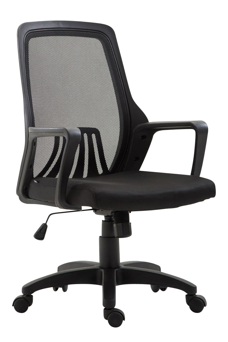 Bürostuhl Clever - Komfort trifft auf Leichtigkeit! Dieser Drehstuhl beeindruckt durch sein modernes Design und die solide Verarbeitung. Der Sitzkomfort wird durch die Polsterung und die ergonomische Rückenlehne gewährleistet. Durch die stufenlose Höhenverstellbarkeit und dem Wippmechanismus wird komfortables Sitzen auch über mehrere Stunden ermöglicht. Zudem verfügt dieser Schreibtischstuhl über einen pflegeleichten Netzbezug, der nicht nur schön aussieht, sondern auch besonders atmungsaktiv ist. Der Bürostuhl steht dabei standsicher auf einem Kunststoffgestell mit fünf Leichtlaufrollen. Somit kann man immer leicht und locker über den Boden rollen - Egal ob Hart - oder Teppichböden. Materialzusammensetzung: 100% Polyester Ca. Maße: Gesamthöhe: 95 - 105 cm Gesamtbreite: 58 cm Gesamttiefe: 59 cm Sitzhöhe: 42 - 52 cm Sitzfläche (BxT): 49 x 49 cm Höhe Rückenlehne: 55 cm Höhe Armlehne (vom Boden / Sitz): 61 - 71 cm / 17 cm Max. Belastbarkeit: 120 kg Gewicht: 11 kg Sitz: Mit Netzbezug Ergonomisch gewölbte Rücklehne für besseren Sitzkomfort Sitzfläche angenehm gepolstert Gestell: Material: Kunststoff Höhenverstellbar und Drehbar Inklusive 5 Leichtlaufrollen Besonderheiten: Lange Lebensdauer Komfortables Sitzen auch nach mehreren Stunden Strapazierfähiger & pflegeleichter Bezug Pflegehinweise: Leichte Verschmutzung mit feuchtem Baumwolltuch abwischen Oberflächen nur mit geeignetem Aufsatz absaugen Zur Reinigung empfehlen wir ein mit lauwarmem Wasser angefeuchtetes Baumwolltuch