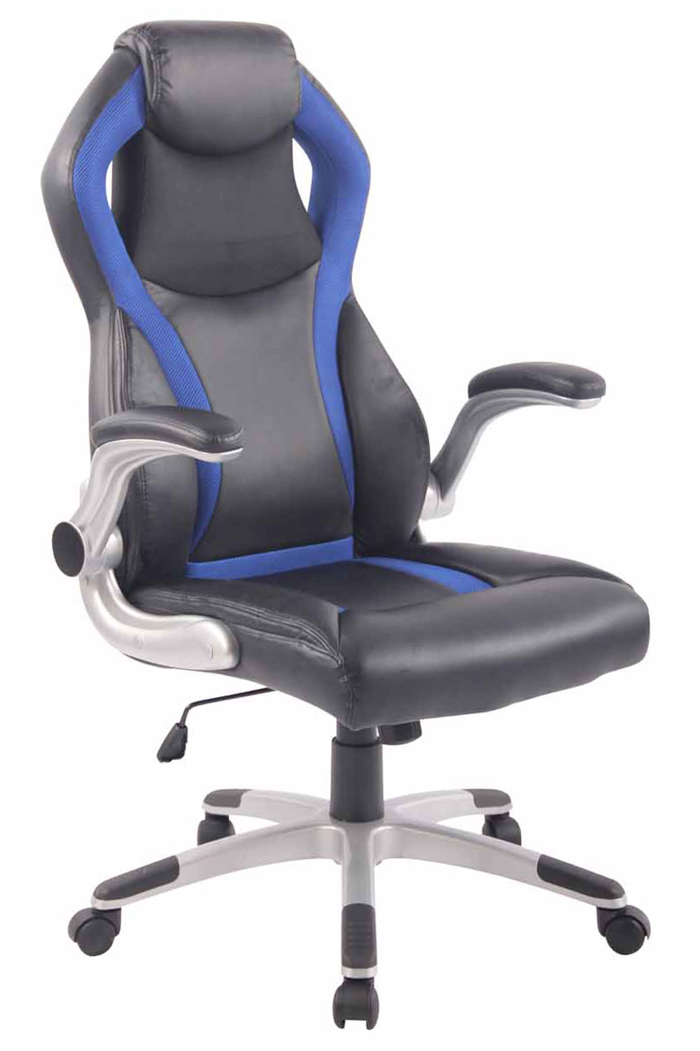 Racing Bürostuhl Donington - Passt sich dem Leben an! Der Bürostuhl Donington mit Kunstlederbezug überzeugt mit seinem sportlichen Design! Dank der Farben und seinem Aufbau wird der sportliche Look geprägt. Sein pflegeleichter Kunstlederbezug und die hochwertige Polsterung sorgen dabei für ein gutes Sitzgefühl, auch über mehrere Stunden Verweildauer. Dank der stufenlos verstellbaren Sitzhöhe und der gepolsterten Armlehnen ist ergonomisches Sitzen jederzeit garantiert. Zusätzlich sorgt der eingebaute Wippmechanismus für mehr Bewegungsfreiheit und Flexibilität. Das robuste Kunststoffgestell und fünf langlebige Laufrollen gewährleisten zudem ein lockeres und leichtes Rollen, egal ob Hart- oder Teppichboden. Materialzusammensetzung Sitzbezug: 100% Polyurethan Ca. Maße: Gesamthöhe: 116 - 126 cm Gesamtbreite: 67 cm Gesamttiefe: 66 cm Sitzhöhe: 47 - 57 cm Sitzfläche: 52 x 50 cm Höhe Rückenlehne: 74 cm Höhe Armlehne (vom Boden): 71 - 81 cm Gewicht: 15 kg Sitz: Sitz, Arm- und Rückenlehne bequem gepolstert Komfortables Sitzen auch nach mehreren Stunden Gestell: Material: Kunststoff Höhenverstellbar und drehbar Inklusive 5 Leichtlaufrollen Besonderheiten: Schwenkbare Armlehnen Modernes Design Strapazierfähiger & pflegeleichter Bezug Pflegehinweise: Leichte Verschmutzung mit feuchtem Baumwolltuch abwischen Zur Reinigung empfehlen wir nur Seifenlauge, Wasser und ein weiches Tuch zu verwenden Oberflächen nur mit geeignetem Aufsatz absaugen
